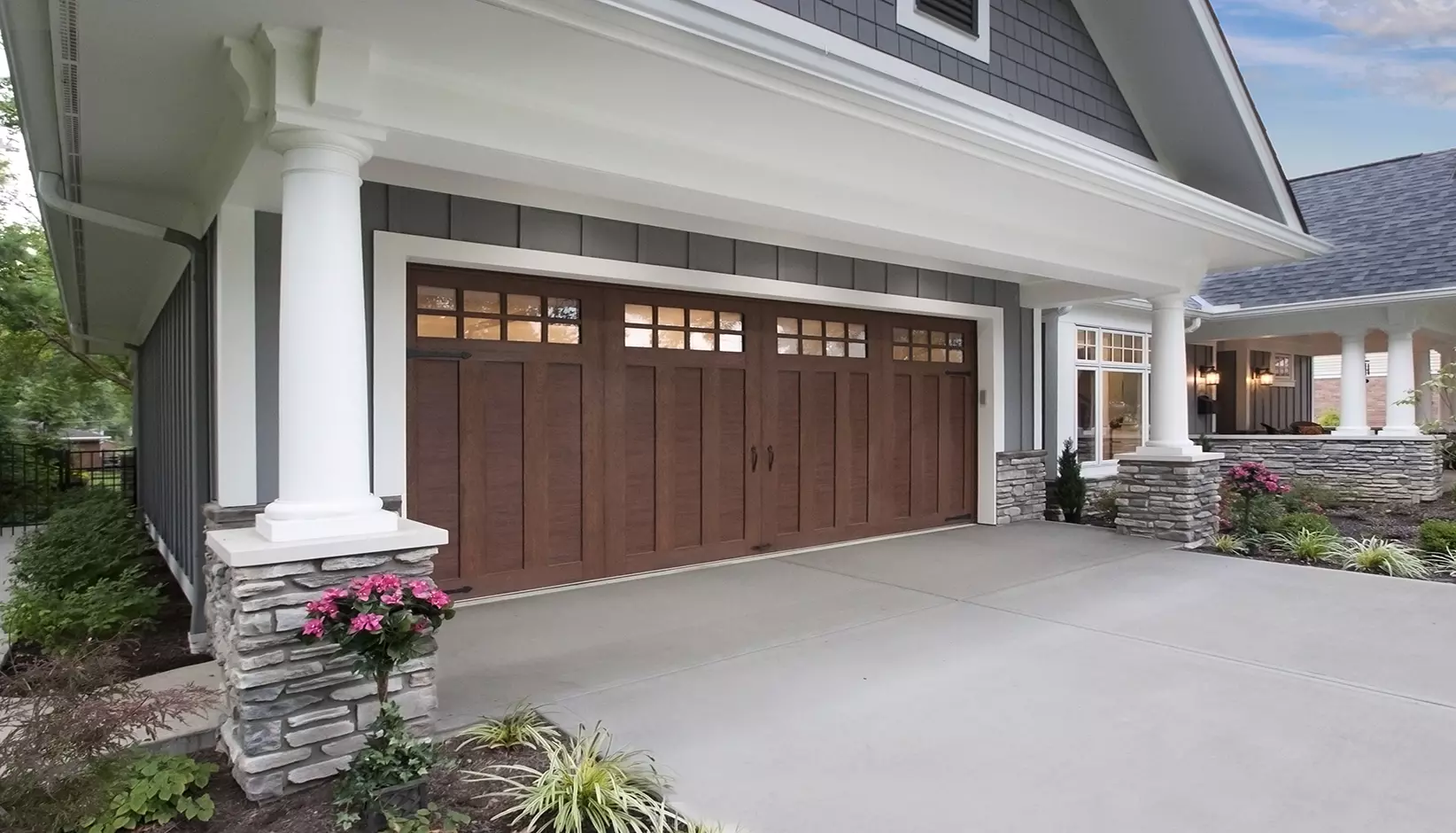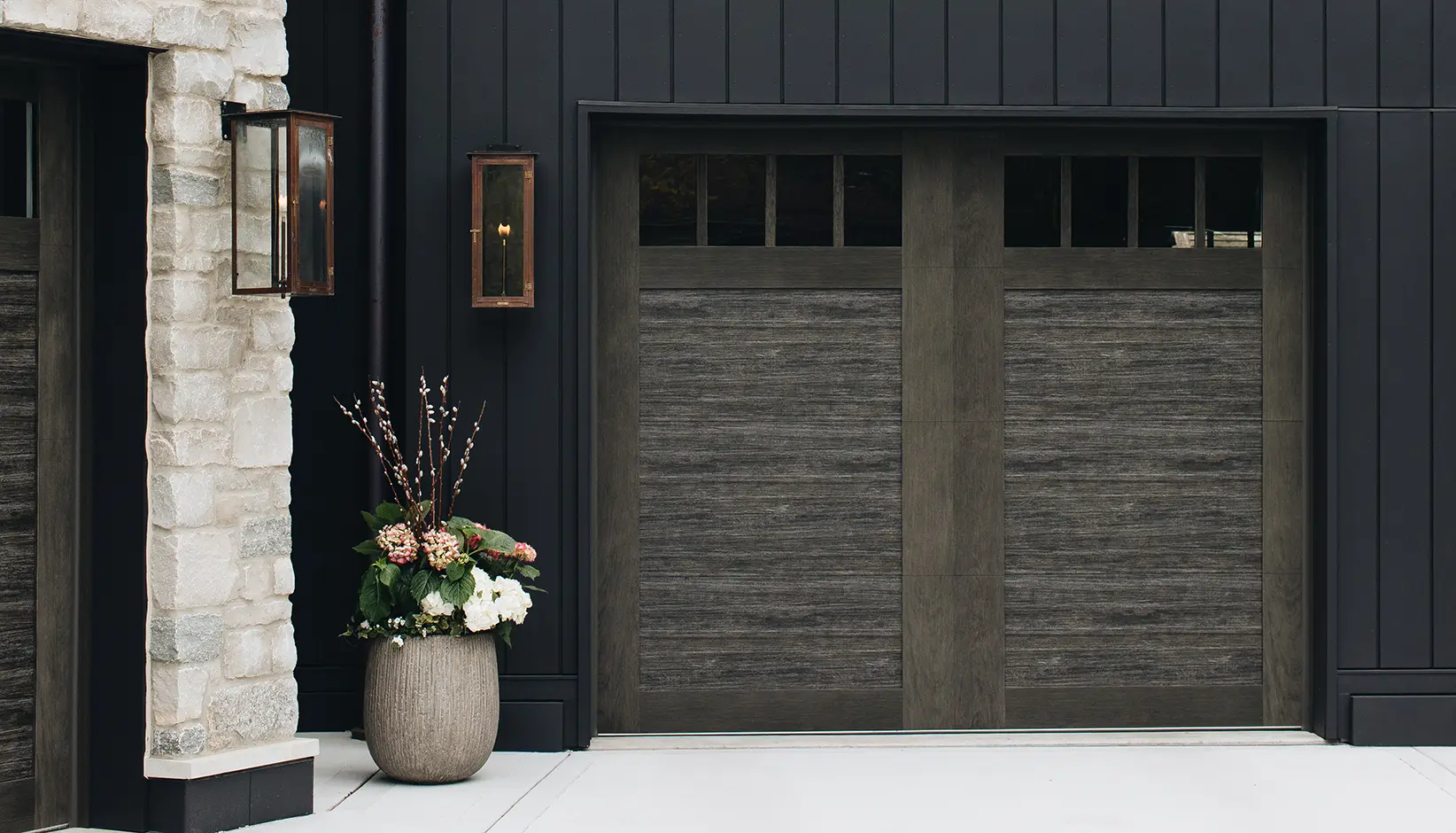 The faux wood composite overlay is molded from real wood, capturing all the charm and natural texture of classic carriage house doors without the maintenance headaches.