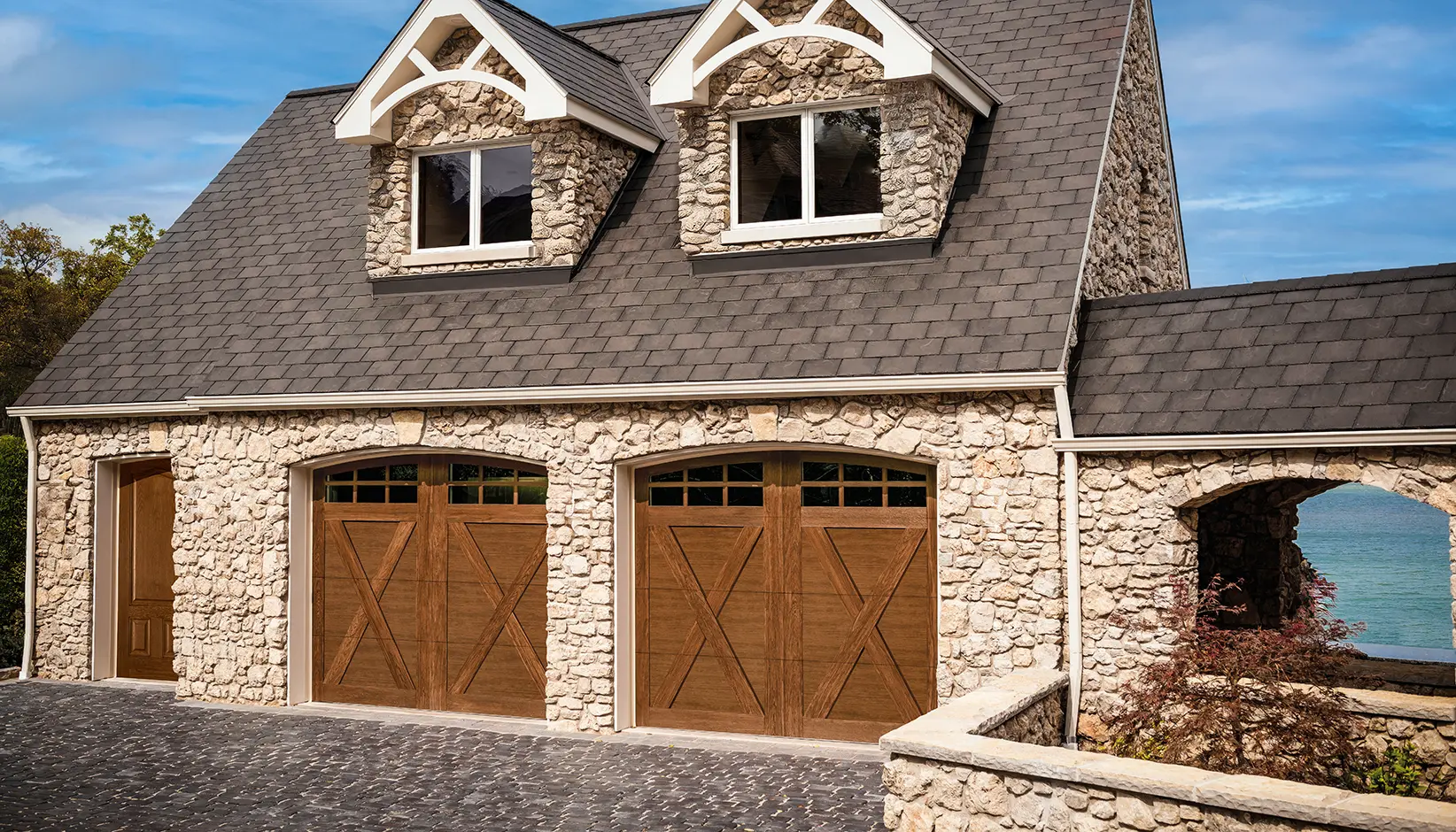 Contact us about this productElevate Your Home with Clopay Canyon Ridge Carriage House 4-Layer Faux Wood Garage Doors
